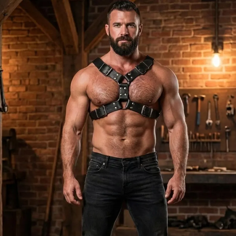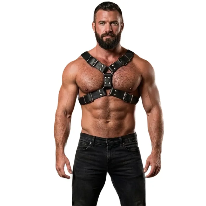 Bold and edgy, this men’s chest harness is crafted from premium leather for durability and style. Perfect for making a statement, it features adjustable straps for a secure and comfortable fit. Ideal for clubwear, cosplay, or intimate occasions.